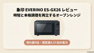 象印 EVERINO ES-GX26を元家電販売員が徹底レビュー。価格.com満足度4.57点、売れ筋3位。芯までレジグリでハンバーグが13分、うきレジで全方位加熱。26Lで二人暮らし・三人家族に最適。バルミューダからの買い替えにもおすすめ。最安値情報や詳細機能も解説します。