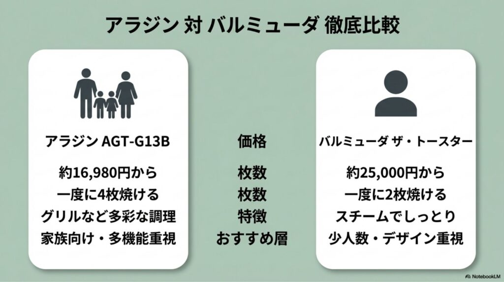アラジン AGT-G13B vs バルミューダ THE TOASTER 徹底比較